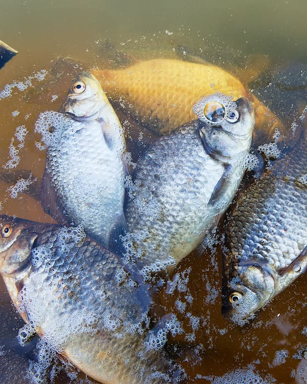 Another telltale sign of poor water quality and low oxygen is a strong, unpleasant smell. Anaerobic bacteria begin to thrive in oxygen-depleted zones, producing gases like hydrogen sulfide — the cause of that unmistakable “rotten egg” odor.